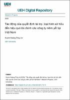 Tác động của quyết định tài trợ, loại hình sở hữu đến hiệu quả tài chính các công ty niêm yết tại Việt NamBài nghiên cứu kiểm tra tác động của quyết định tài trợ, loại hình sở hữu đến hiệu quả tài chính 179 công ty niêm yết trên Sở giao dịch chứng khoán TP. Hồ Chí Minh (HOSE) từ 2013-2023. Nghiên cứu sử dụng phương pháp ước lượng FGLS để phân tích ảnh hưởng của các biến số. Kết quả cho thấy đòn bẩy dài hạn (LTDTA) và tổng đòn bẩy (TDTA) có ảnh hưởng tiêu cực đến ROE. Bên cạnh đó, tổng đòn bẩy (TDTA) c