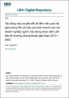 Tác động của chuyển đổi số đến mối quan hệ giữa dòng tiền và hiệu quả kinh doanh của các doanh nghiệp ngành xây dựng được niêm yết trên thị trường chứng khoán giai đoạn 2013 – 2023Author(s): Trần Tuyết Hảo (2025)