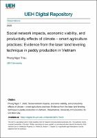 Social network impacts, economic viability, and productivity effects of climate – smart agriculture practices: Evidence from the laser land leveling technique in paddy production in VietnamThis research seeks to furnish empirical evidence concerning the economic efficiency of laser land leveling technology and to analyze both private and social benefits derived from its application. Furthermore, it aims to investigate the channels through which spillover effects occur among rice farmers in the Mekong Delta. The theoretical underpinnings and methodological approaches of this disserta