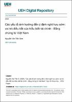 Các yếu tố ảnh hưởng đến ý định nghỉ hưu sớm: vai trò điều tiết của hiểu biết tài chính - Bằng chứng từ Việt NamAuthor(s): Nguyễn Văn Tiến Sơn (2025)